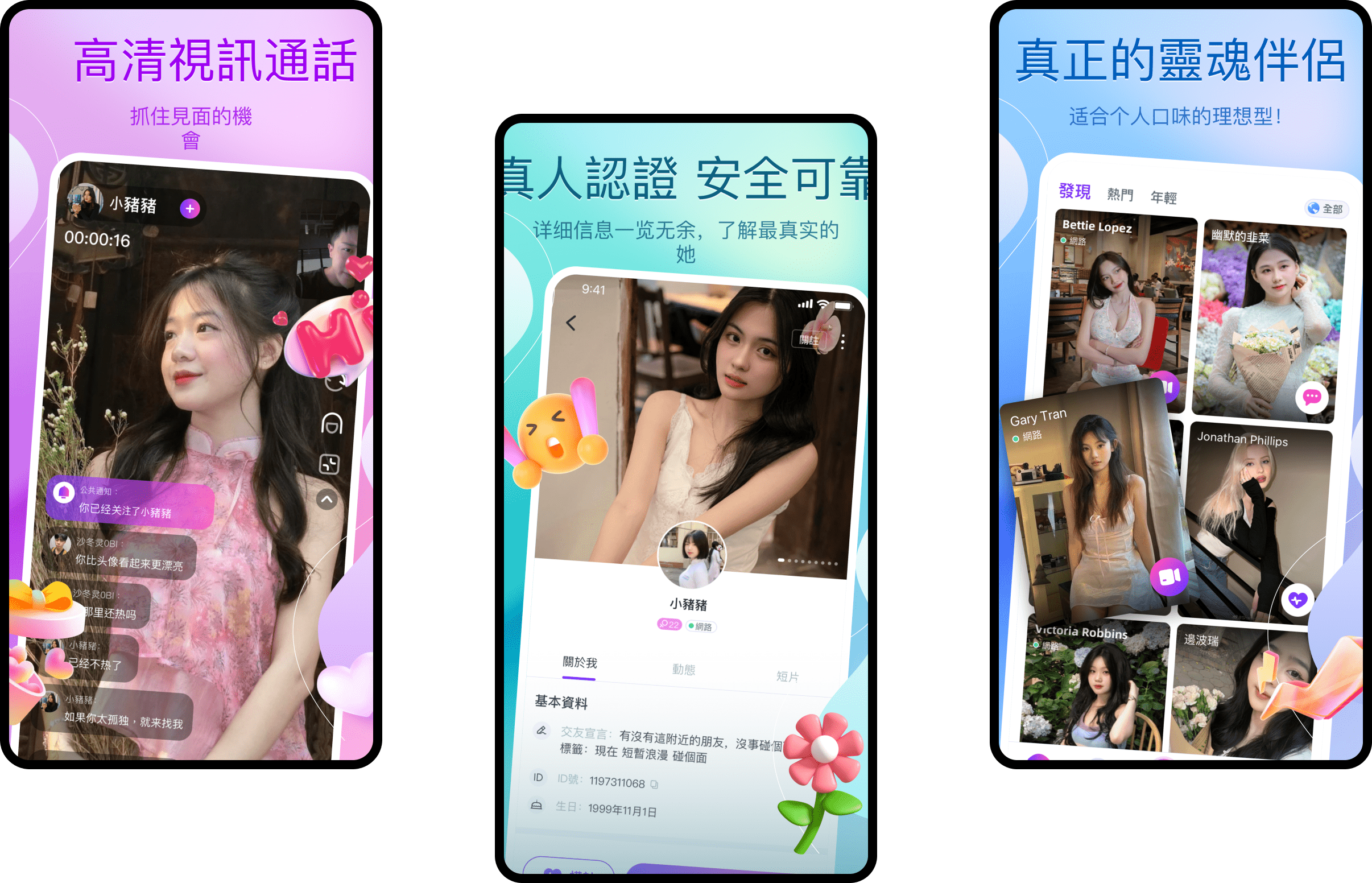 Nó có thể kết hợp trò chuyện video thời gian thực, trò chuyện thoại, trò chuyện văn bản và dịch thuật thời gian thực bất cứ lúc nào để tạo điều kiện cho những người trẻ ở cả hai ngôn ngữ trò chuyện, người dùng có thể tiến hành kết hợp video dựa trên sở thích và sở thích của họ để tìm ra thứ phù hợp; người; nó có chức năng khớp cực nhanh cho phép giao tiếp văn bản, Dịch, đọc to và học ngôn ngữ trong khi kết bạn, bạn cũng có thể đăng thông tin cập nhật để hiểu động lực sống và suy nghĩ của các cô gái Việt Nam...